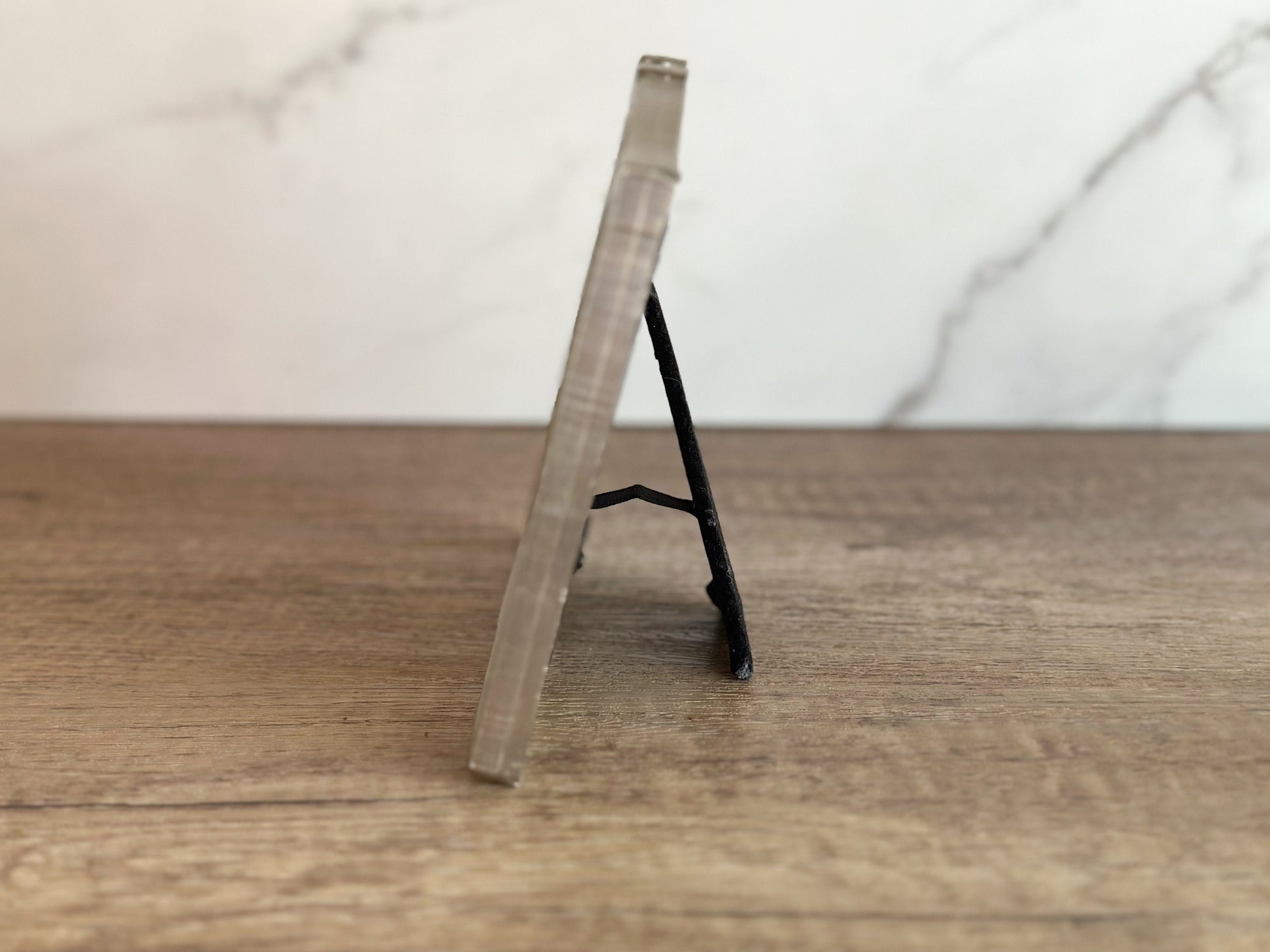 Cute silver toned frame with bow detail. Measures about 5.5” tall and 7.25” wide.