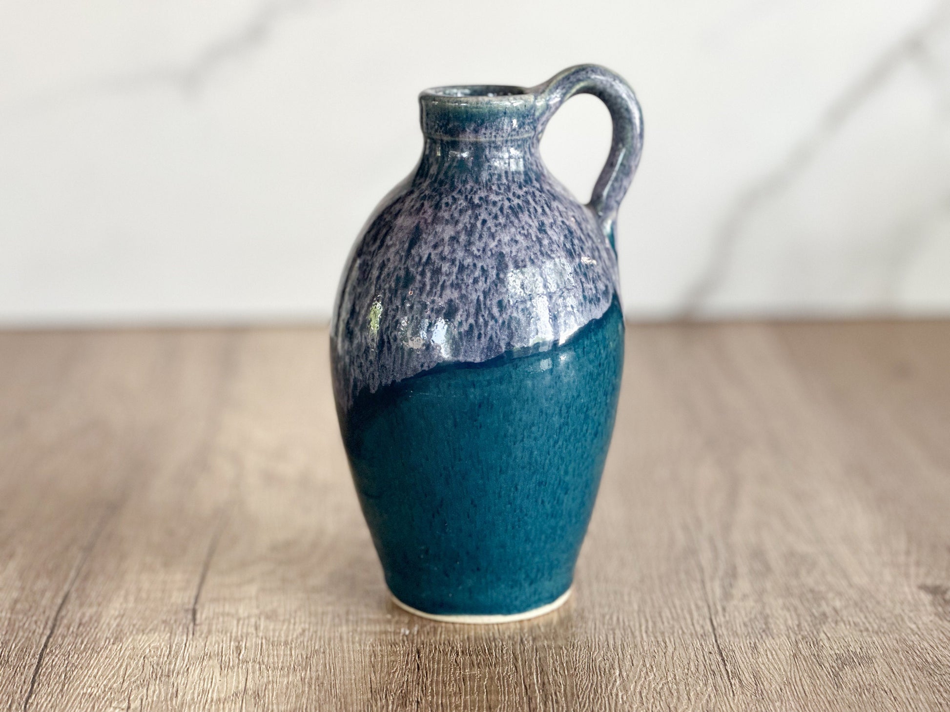 Two Tone Glazed Blue Pottery Vase - Handmade Vintage Stoneware Bud Vase